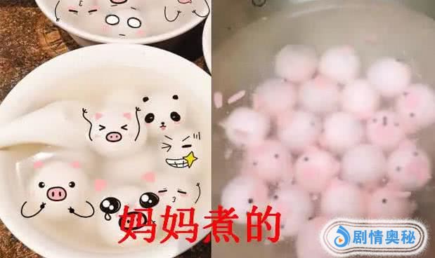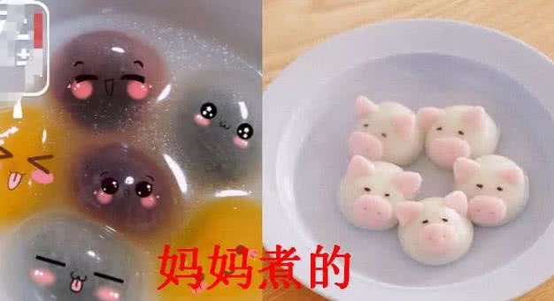 妈妈煮的汤圆不仅是亲手包的,有时候还会捏造出一些可爱的造型,配上一个个颜表情,马上就是一张非常可爱的图片了,看着的时候都十分的有食欲,估计就是拿出去卖也是可以的,这样的差距也是让很多男生有苦说不出,是不是觉得内容过于真实呢?