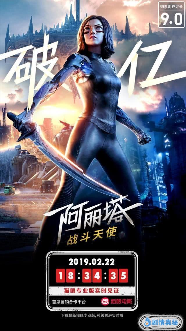 根据猫眼专业版数据,截止至2月22日18点34分,《阿丽塔:战斗天使》上映首日票房突破1亿!影片在首日就获得了超高的口碑,猫眼评分达到了8.9,有73%的购票观众给出了五星好评。