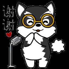 我是戴着眼镜拿着话筒的阿拉斯加