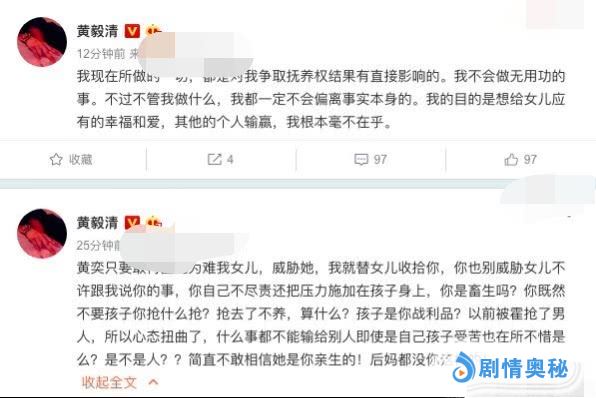 在得知黄奕不照顾女儿后,这就出现了近日黄毅清在网上发文大骂黄奕“畜生不如”,希望她把女儿给回自己抚养了。