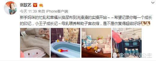 看来张歆艺也是卸货好多天了,终于在今天晒出了产后的照片!并说到“新手妈咪的忙乱和幸福从换尿布到洗澡澡的实操开始,希望记录你每一次成长的印记,小王子成长记,母乳喂养帮助子宫收缩,是不是恢复的超级好呀”。