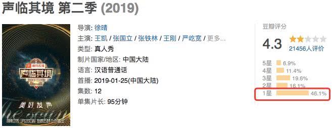 只是,我实在是没想到,《声临其境》的魔咒居然来的这么快,豆瓣评分中,46.1%的一星更是让人目瞪口呆。