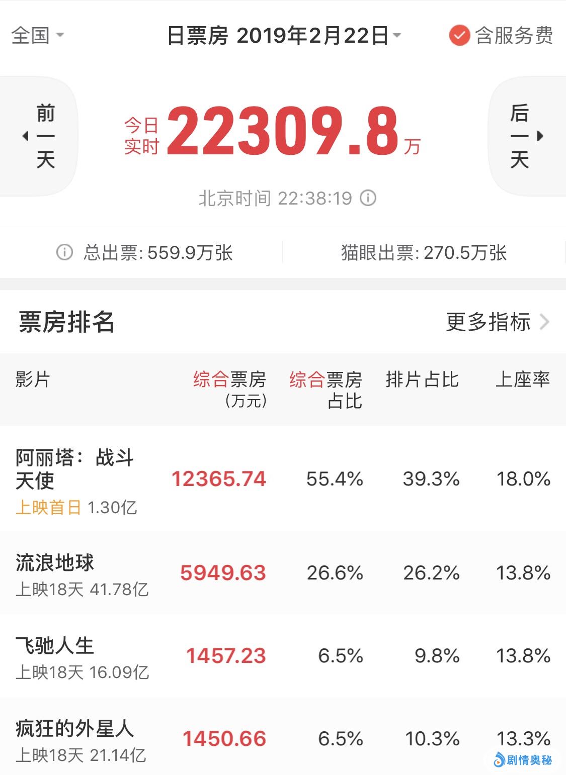 随着《阿丽塔:战斗天使》于本周五在国内院线上映,国内院线的票房成绩也是发生了不小的变化,单日票房冠军的宝座也算是“易主”了。