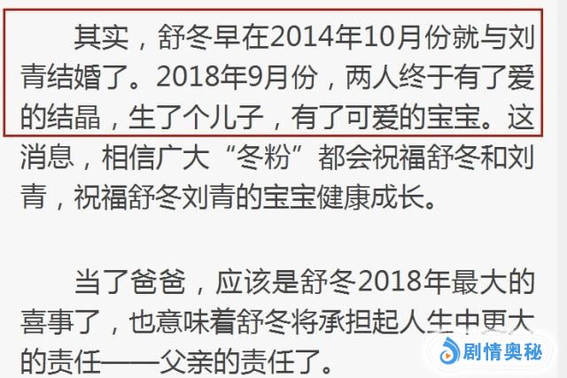当然小谢在2号讲过舒冬已经成家了,粉丝们更是纷纷为其送上祝福。不过最近看到网友说舒冬升级当爸爸,其在2018年9育有一子之事,还有待求证。毕竟结婚4年多了,想想有孩子也很正常。不过很多明星随着事业的发展,不公布无非为了保护家人隐私,谁都不希望孩子刚出生就成明星吧!