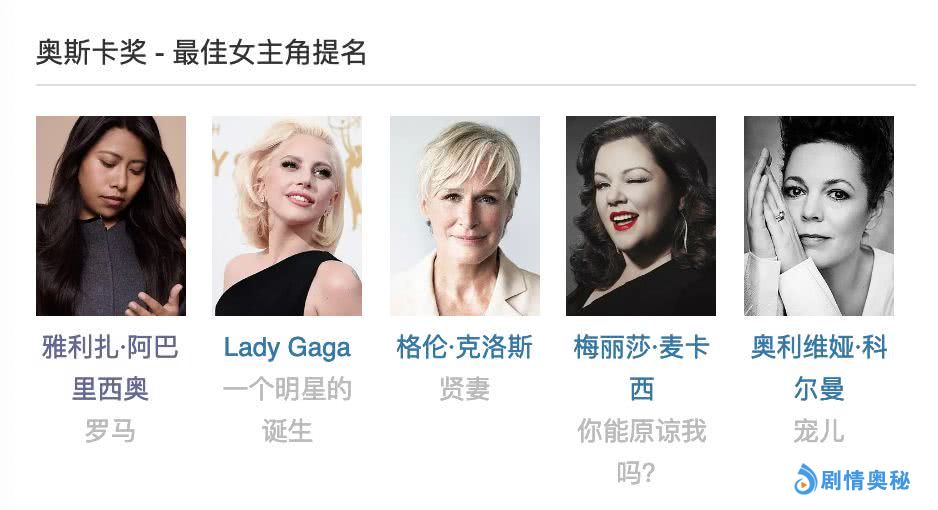 同样没那么吸引人的,其实还有影后的竞逐。今年五个影后提名,