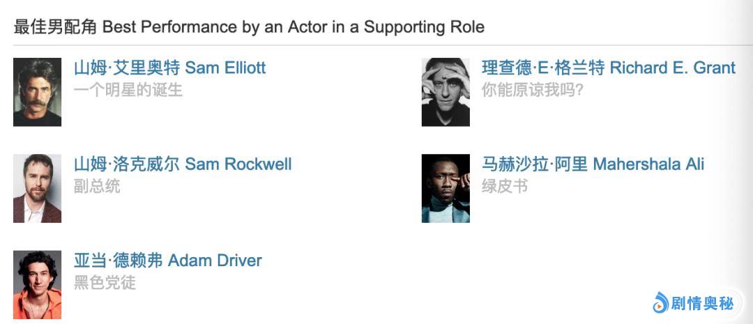 因为他之前已经拿到了演员工会奖、金球奖、英国电影学院奖这几个重要前哨战的最佳男演员,也成为男演员大热门。所以,你们也可以优先压下他。