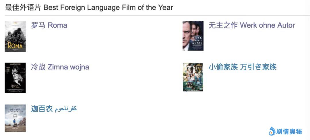 其他奖项也简单聊聊吧。最佳外语片: