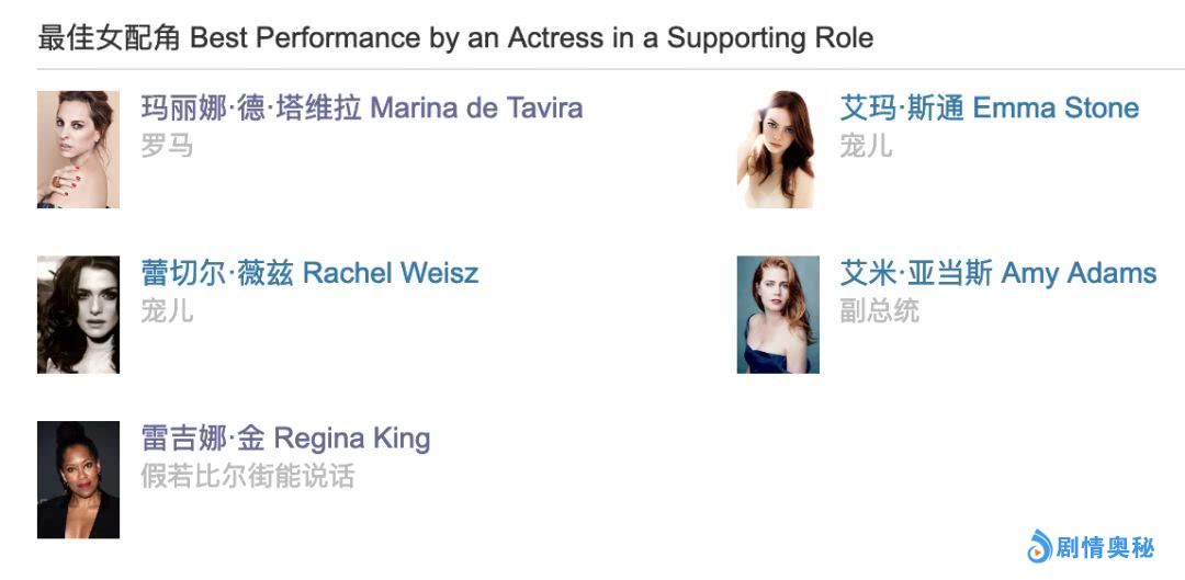 相比之下,《宠儿》因为三个女演员都很强,反倒容易分票,尤其是蕾切尔·薇姿和艾玛·斯通,要一起竞逐女配,难免互相分散票数。