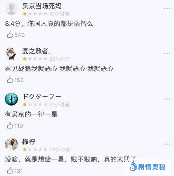 不过随着这部电影的火爆,主演吴京却在微博上受到了很大的争议,像是在电影播出之后不久,很多网友就在微博上纷纷开始讨论吴京,大部分的言论都是针对于他,而没有说电影的情况,甚至在其中还有2万人,全部都清一色点了一星的评价