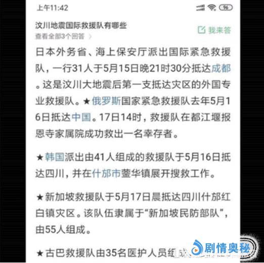 在十一年前我国四川发生了一场大地震,在灾情发生了之后,很多国家也都赶赴当时的灾区进行支援。当时第一个到达灾区的,他国的救援队伍,就是日本。而后抵达灾区的这些国家,在比对之后,就能发现了,影片当中顺序,和十一年前是一模一样的。虽然官方并没有对这一发现做明确的回应,但是观众们的心里都明白,这些是影片对于帮助过我们的人,永远感恩的一种情怀的展示,真的很有心了。