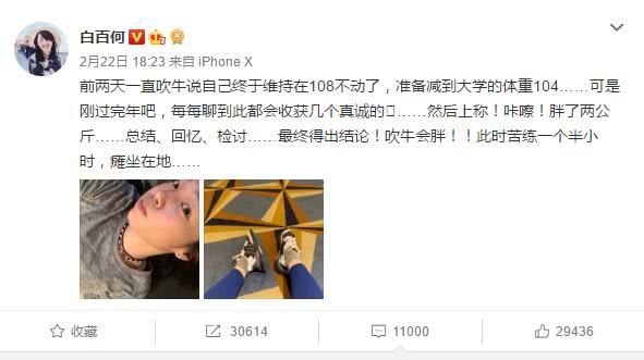 所以白百何就算现在事业受挫,也依然对身材管理不放弃,171CM的身高,要减到104斤,一看春节胖了两公斤,就会总结、回忆、检讨,再苦练一个半小时,直到累瘫坐在地上。