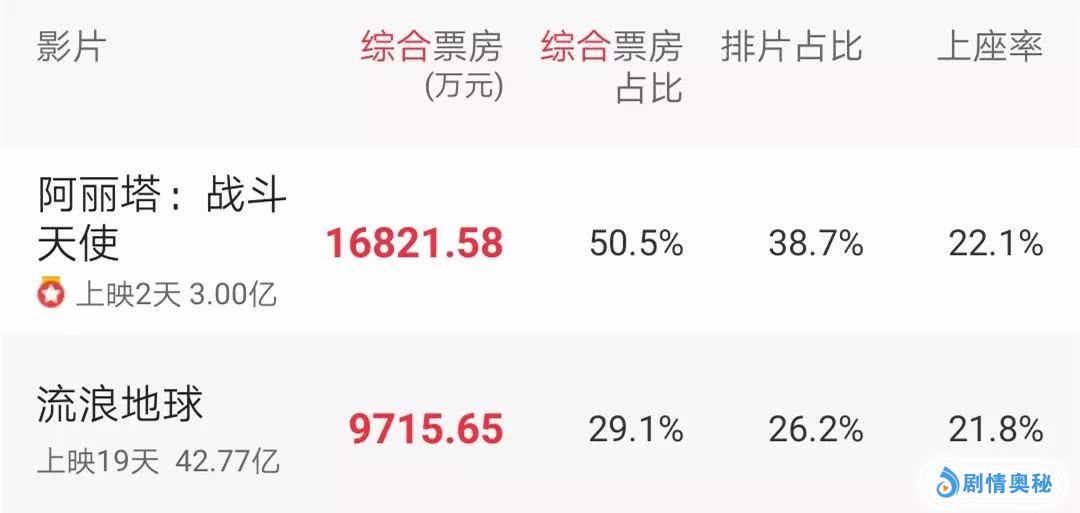 上映两天,《阿丽塔》的总票房便突破了3亿元,2月23日单日票房收入超1.68亿元。
