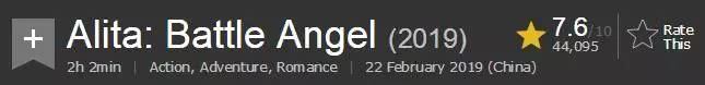 目前,《阿丽塔》豆瓣评分为7.6分,IMDb平台也是7.6分,但烂番茄新鲜度却只拿下了59%。作为一部爆米花大片,这样的口碑成绩处于中上水平。