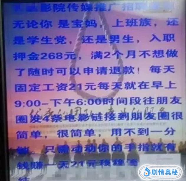 从去年开始,不少朋友发现一个新诈骗方式,只要缴纳268元,在直接朋友圈发发电影广告的链接(或者在微信群),便可以每天赚20元,且不占用太多时间。