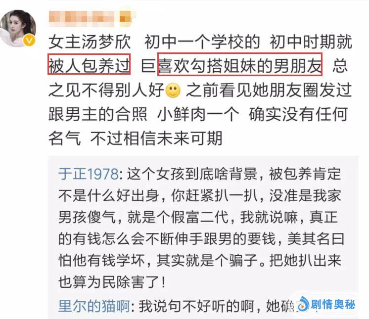 也有网友爆料,称自己是汤梦欣的初中同学,在初中的时候,汤就被包养过,而且喜欢勾搭姐妹的男朋友,是个见不得别人好的人。还说之前在他的朋友圈见过她和赵弈钦的合影,但信息到底是否属实,还不知道!