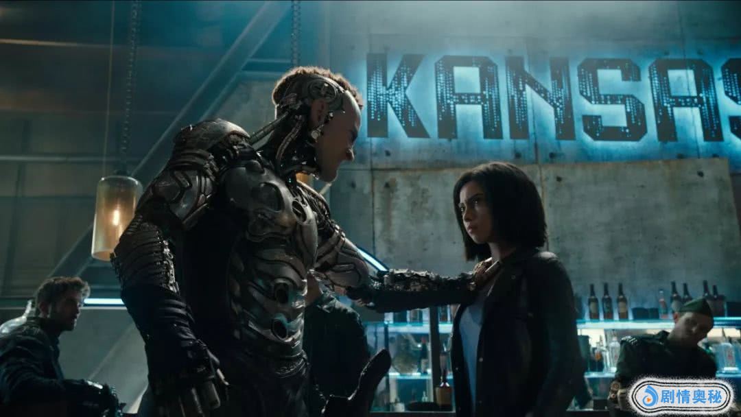 《阿丽塔》不一样,它从一开始就直接给了阿丽塔一副全金属躯干,除了脑袋,其它都是机械。除她以外,片中登场的形形色色的生化人,都有一副经过高度改装的金属躯干,从视觉上来讲,给人的感觉是他们更多是机器人,而不再是血肉之躯。