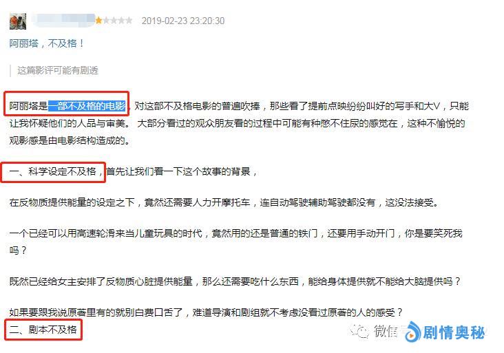 不可否认,影片有科幻大师卡梅隆坐镇,特效上似乎是毫无毛病而言,而且又是一次视觉和技术上的胜利,影片中好几场燃爆的特技打斗场面看得人非常爽快。只可惜其他要素被无情放弃了,过快过糙的剧情、形同鸡肋的人物、粗枝大叶的感情…这些加起来,只怕是再怎么炫技也是无力回天。甚至观影之后,众多网友和影迷还在质疑,这是一部让卡梅隆魂牵梦绕十余年的电影?