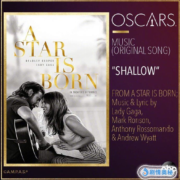 最佳原创歌曲:《Shallow》(《一个明星的诞生》)