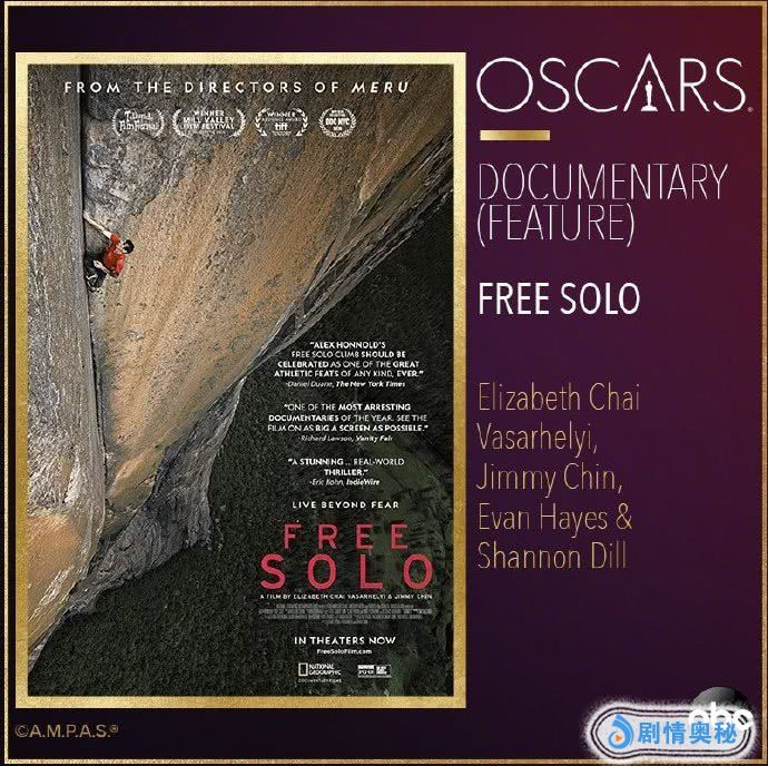 最佳纪录长片:《徒手攀岩》