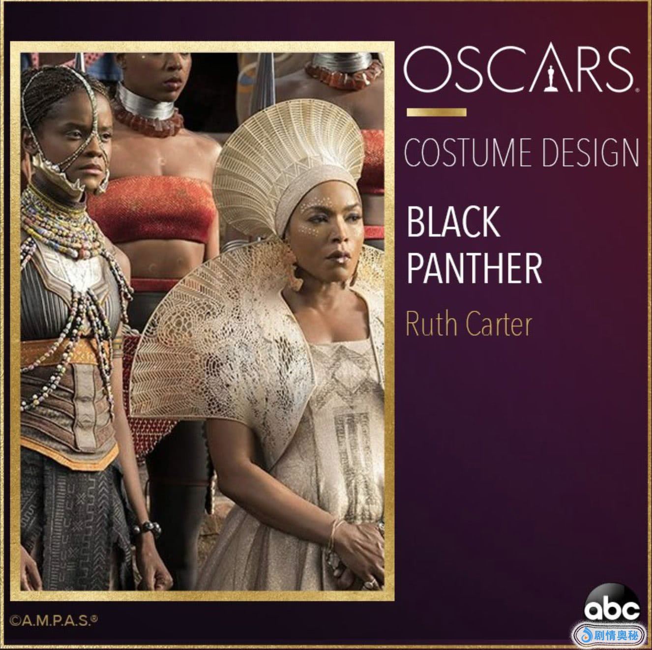 知名服装设计师露丝·E·卡特凭《黑豹》获奖,她也是史上第一个获该奖的黑人。此前,她曾经为《为所应为》、《塞尔玛》等著名电影担任服装设计。