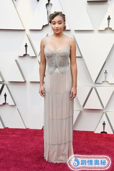 《你给我的仇恨》女主角阿曼德拉·斯坦伯格亮相红毯,她原本为《黑豹》试镜,后来觉得不太合适选择退出,不知道现在是不是后悔了?也可能是摄影师角度的原因,她穿的这身裙子本来很得体,但总觉得整个人有点驼背,缺少明星应有的气场,另外,发型也不太好,造型师扣分。