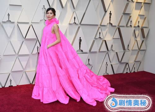 《摘金奇缘》主演嘉玛·陈也来走红毯了,这身粉色裙子标新立异,确实很扎眼,然而材质还是让人吐槽,看起来很像是纸缝的,另外盖住了脖子,显得真个人不够挺拔。