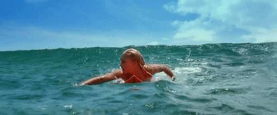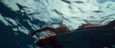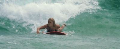 贝瑟尼躺在平静的海面上,一条鲨鱼咬掉了冲浪板,撕扯下了贝瑟尼的左臂,瞬间,鲜血染红海面…