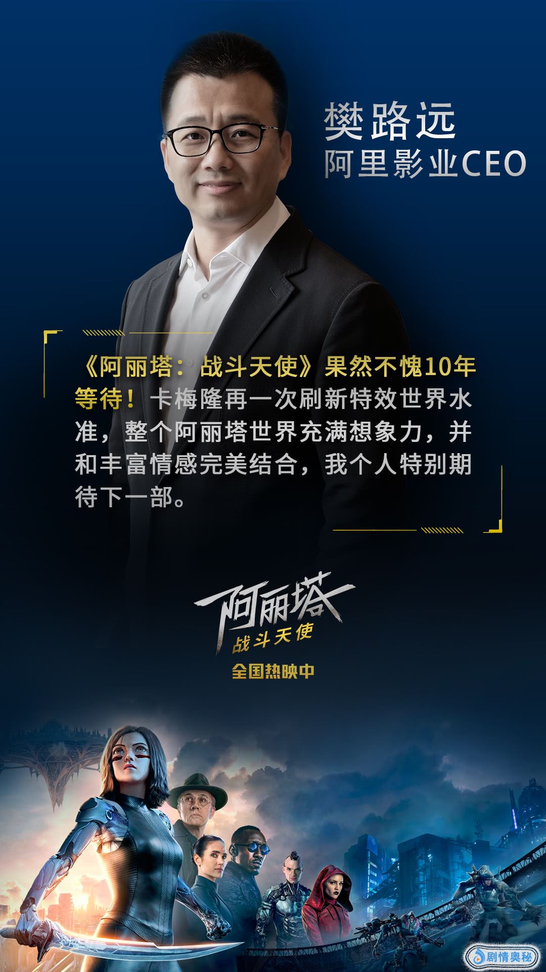 各行业龙头领导者也纷纷表达了对《阿丽塔:战斗天使》的赞扬。小米创始人雷军称赞“这部电影的视觉非常震撼”。