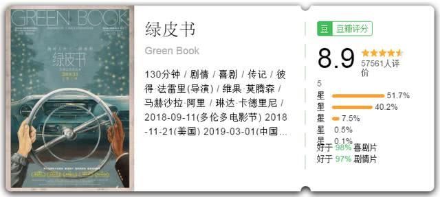 再来说说本届最大赢家《绿皮书》,拿下最佳影片、最佳男配角两项大奖。《绿皮书》演员演技到位,剧情叙述精彩,再加上种族正确,荣获最佳影片可以说是意料之中。