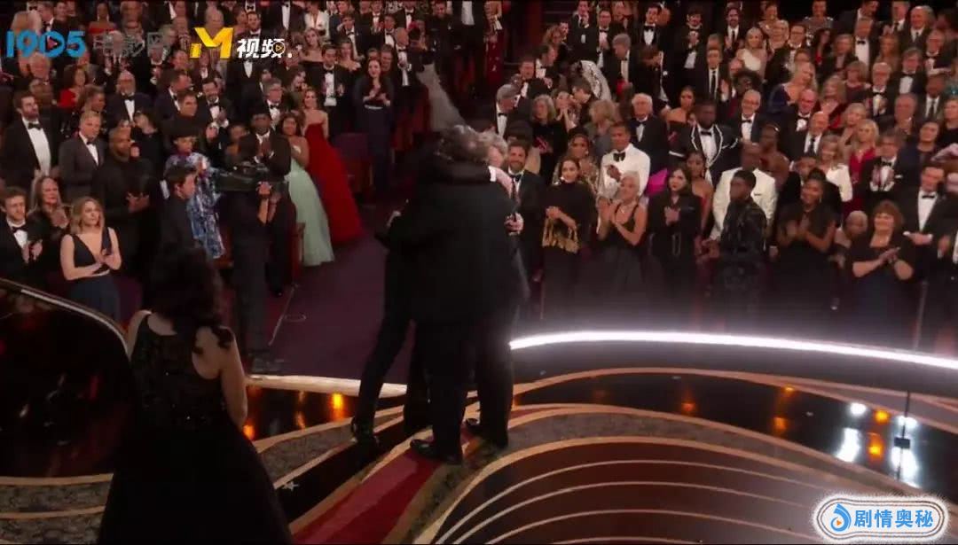获得最佳外语片后,阿方索·卡隆与《罗马》女主角相拥