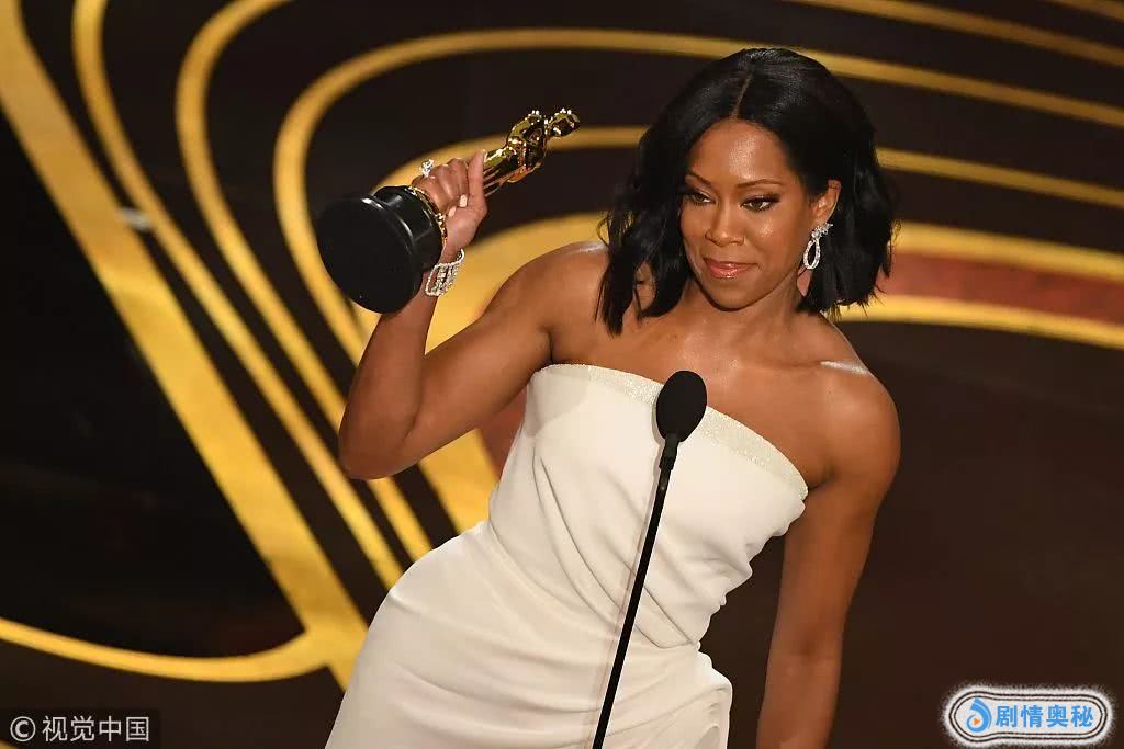 最佳女配角同样由一位黑人演员获得。雷吉娜·金在《月光男孩》导演新片《假若比尔街能说话》中饰演了一位坚毅伟大的黑人女性。这是她首次提名就成功获奖。而凭借《副总统》入围的艾米·亚当斯已是第五次提名最佳女配,无奈依然遗憾陪跑。