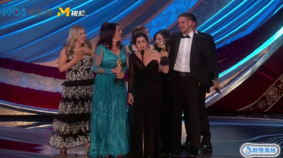 最佳纪录短片获奖者《句尾》主创在台上相当激动,直言:“没想到一部关于女性生理期的电影能获得奥斯卡!Period(句号/经期)应该是一句话的终结,而不一个女孩教育的终结。”影片纪录了一群印度女性为经期卫生所做的努力和抗争。