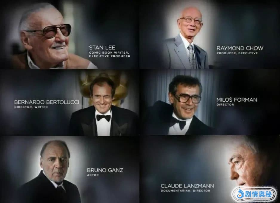 作为固定环节,奥斯卡今年同样在现场缅怀了这一年中去世的电影人:斯坦·李、布鲁诺·甘茨、贝纳尔多·贝托鲁奇、邹文怀、高畑勋、米洛斯·福尔曼等影人的影像出现在大荧幕,全场起立致敬。
