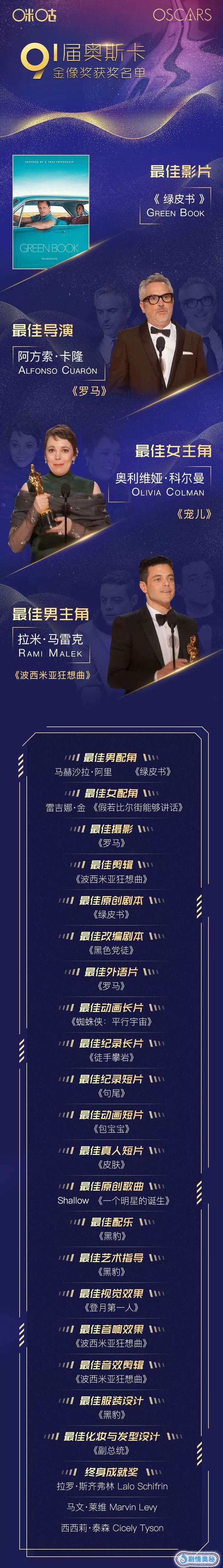 至此本届奥斯卡已经完美落幕,