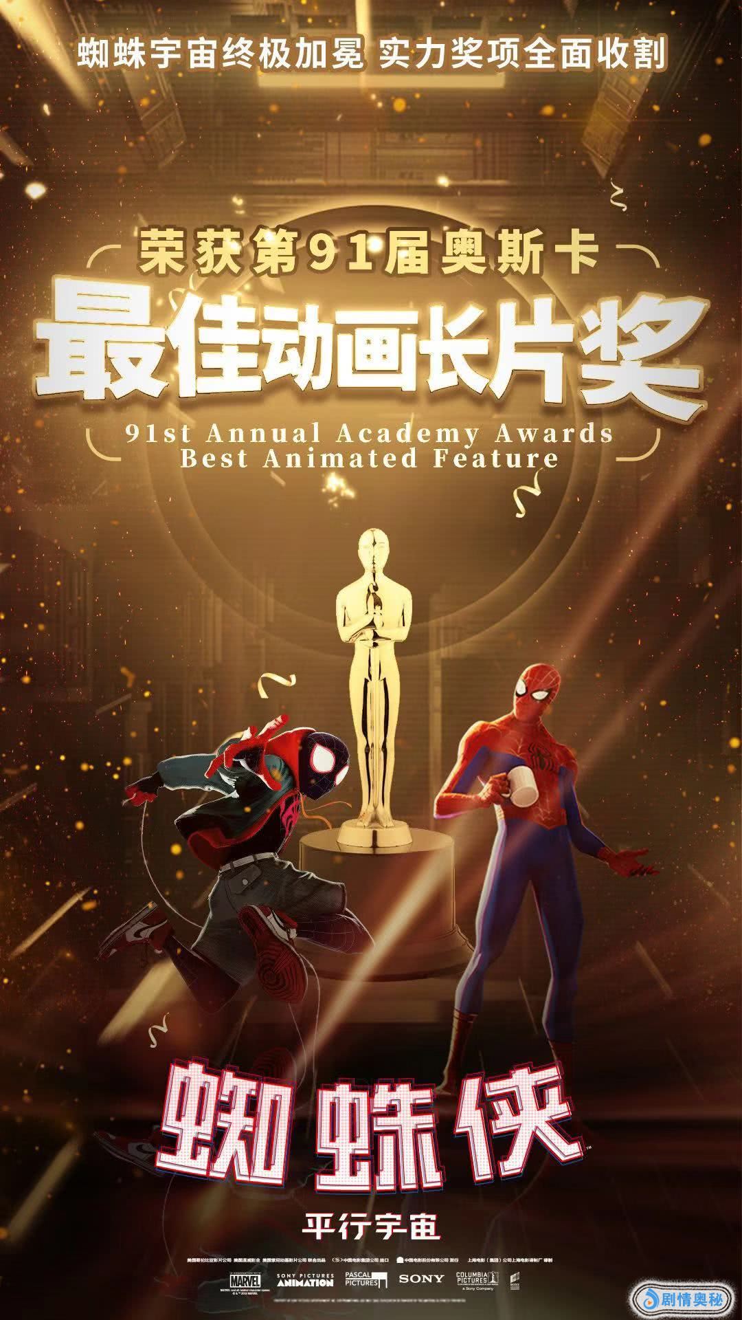 在刚刚落下帷幕的第91届奥斯卡金像奖颁奖典礼上,由美国索尼哥伦比亚影片公司、美国漫威公司和美国索尼动画影片公司联合出品的动画电影《蜘蛛侠:平行宇宙》毫无悬念地摘得最佳动画长片奖项,为收获满满的颁奖季画上完美句号。影片由鲍勃·佩尔西凯蒂、彼得·拉姆齐、罗德尼·罗斯曼联合执导,讲述了来自不同平行宇宙的六位蜘蛛侠联手对抗蜘蛛侠宇宙强大反派的精彩故事。