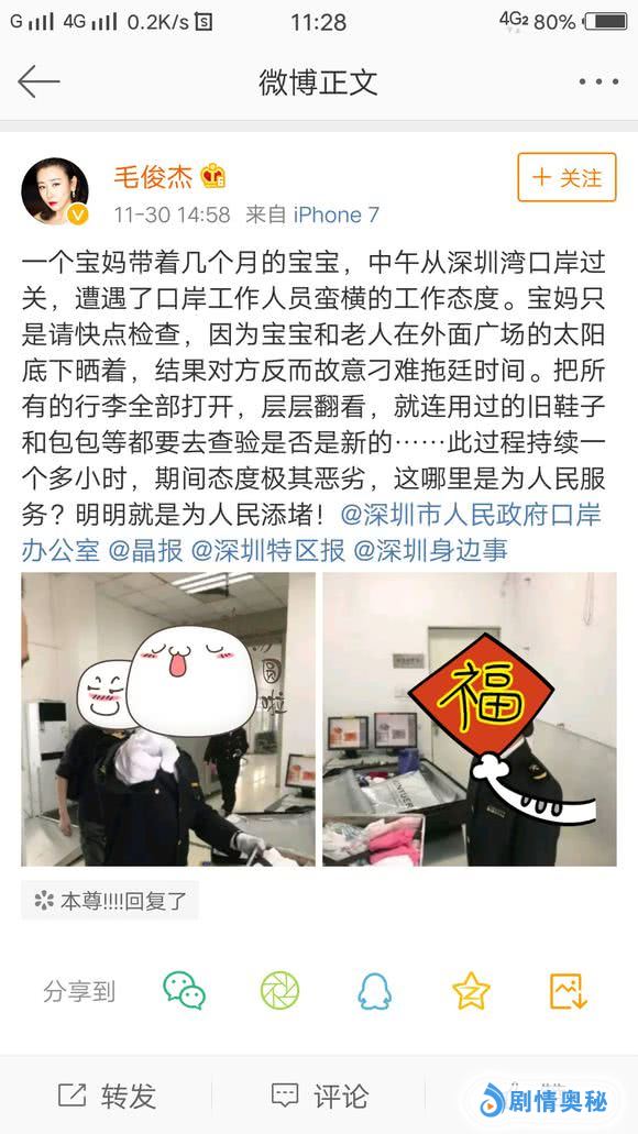 接着过了一个月,明星毛俊杰因为在口岸安检和工作人员发生摩擦,发微博将口岸工作人员的照片不打码就挂了出来,说整个检查持续了一个多小时,结果监控表明查验一共只耗时9分钟,惨遭打脸。