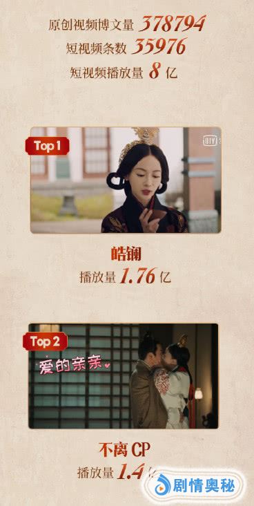 强强组合,受到的关注才会更多!而在微博电视收集的一组数据中不难看出,《皓镧传》的热度还是相当不错的。相关话题的阅读量就破了32亿,短视频播放量也有8亿的好成绩。皓镧身为女主,她的个人cut自然是要排在no.1的。位居第二的,则是不离cp的爱的亲亲。对于这个结果,一部分表示很意外。毕竟后期使劲撒狗粮的是盈利cp。尤其在剧情方面来说,嬴异人和李皓镧是《皓镧传》的官配。两人不仅结为了夫妇,还有了爱的结晶。不过我们也不能否定不离cp确实也深入人心。虽然吕不韦有时候挺纠结的,但他一直为皓镧着想的心从未变过。