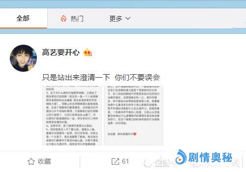 但是在看到允恩回应的这两个字的时候,网友们却是觉得太过于冷淡,甚至是有点心寒,尤其是对于一些高艺的粉丝来说更是这样觉得的。在一些网友看来,觉得既然高艺已经出面为允恩解释了那么多,允恩怎么着也应该回应的字多一点,即使是为了撇清与高艺的关系,也不应该仅仅只回应“谢谢”两个字。这样的两个字看起来实在是太过生硬了,显得两个人之间毫无感情存在。