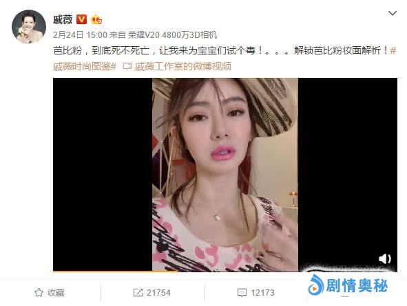 去年开始女明星都纷纷当起了各类视频博主,各种分享好物,有美容仪器也有奢侈富婆包,但更多的是分享护肤和妆容,但随着热度褪去,好多人都懒得更新,而戚薇却一直兴趣不减,大有越来越找到自己主业的势头,要不是她的新剧官宣,差点忘了她其实是演员。