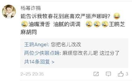 2月25日有一位微博名叫“杨幂诈捐”的网友,在王鸥微博下发表评论,文字丝毫没有提及杨幂的事情,只是简单讨论剧情,王鸥却说:您把名儿改改。一下子让阅读这评论的网友,从剧情跳到了曾经的绯闻上,可想而知,通过过多解读,这事又上了热搜榜。