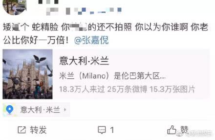当红明星自然是很多普通人想合影的,有些是出于喜欢,有些人是出于炫耀,而这位网友在提出和张嘉倪合影被拒绝之后,大有“得不到就要毁了你”的节奏,在网上出言不逊还直接艾特张嘉倪。