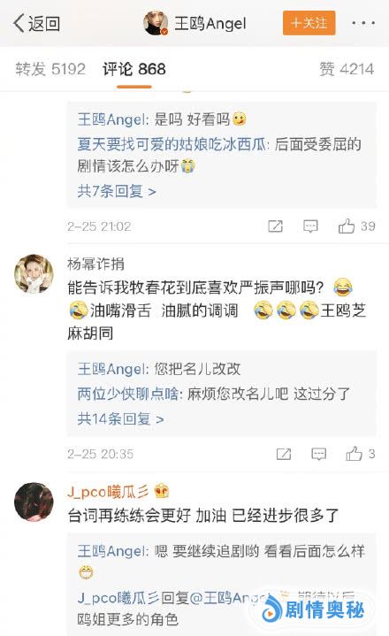 一个名叫"杨幂诈捐"的粉丝,问着她关于剧中的问题,