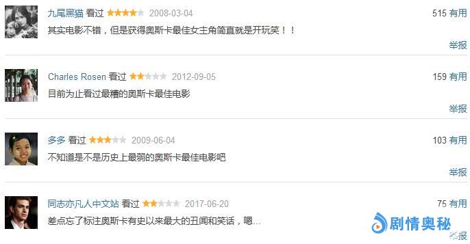 然而,只要打开本片的豆瓣页面,就能看到网友们满屏的吐槽,没有人认为它配得上小金人。