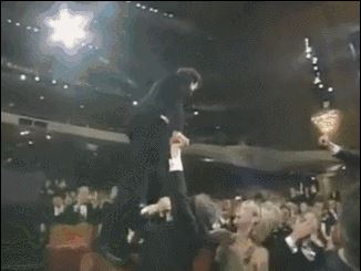 《美丽人生》夺得奥斯卡最佳外语片时,导演兼男主角的罗伯托·贝尼尼兴奋地站上了椅背,向全场的观众鞠躬致谢。