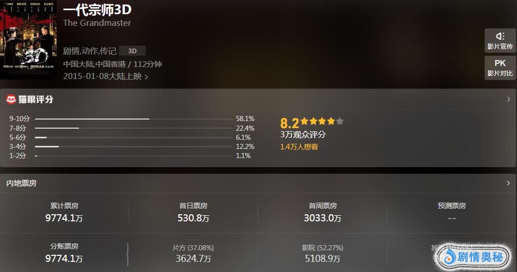 《一代宗师》是西方观众很喜爱的功夫题材,片中男女主角在欧美的影响力也很大,可为何票房成绩不如李连杰的功夫大片呢?梁朝伟章子怡比起真正的国际巨星差距真不小,当时“咏春热”席卷全球,王家卫又是世界级大导演,可没想该片最后竟然还怒亏了1.13亿元,投资人都哭晕厕所了。
