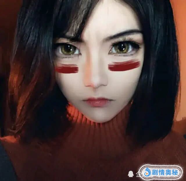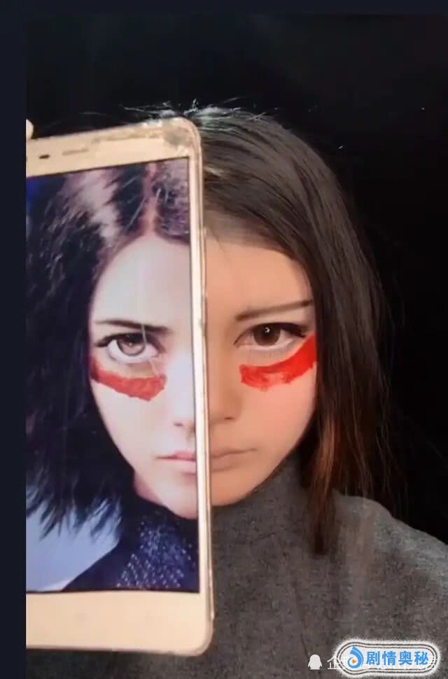 另外,也有不少网友纷纷cosplay阿丽塔,主要就是模仿阿丽塔在双眼下面抹一道红色印记。