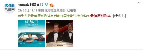 《绿皮书》凭借优异的剧本获得最佳原创剧本