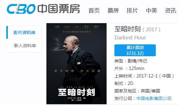 作为历史传记片的《至暗时刻》则也先于奥斯卡奖,便锁定了内地院线。2017年12月1日上映后,虽然口碑良好,但票房也仅有3731.3万。