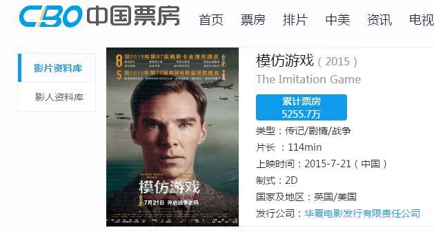 再向前探寻,2015年,《模仿游戏》在获得当年奥斯卡最佳改编剧本奖,并获得最佳影片提名后5个月在内地上映,票房仍达到了5255.7万。