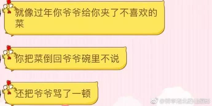 甚至有网友用“过年爷爷给你夹了菜,你把菜倒回爷爷碗里不说,还把爷爷骂了一顿”来形容这件事